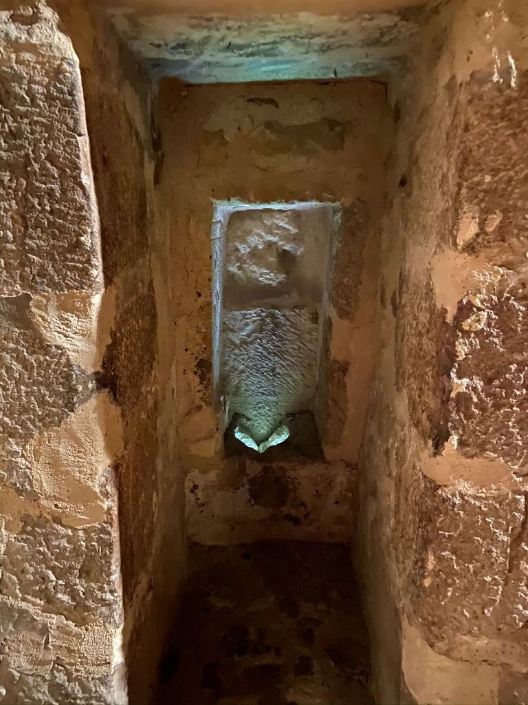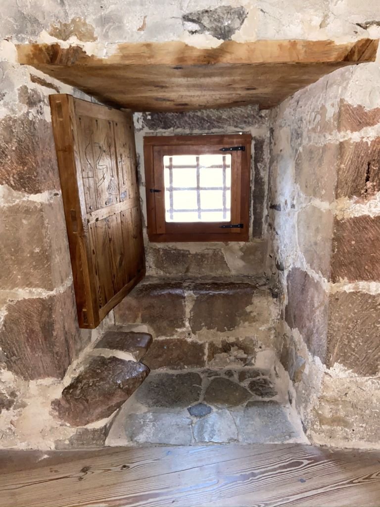 Mas o ponto alto da visita, pra mim, foi a prisão medieval, que ainda pode ser visitada. Entrar ali foi forte. Os corredores escuros, as celas estreitas… tudo te força a pensar em quem já passou por ali. O guia contava as histórias, mas confesso que em muitos momentos eu só ouvia o som das minhas próprias perguntas: Como alguém viveu isso? Como era o dia a dia preso aqui? Dá um nó na cabeça.